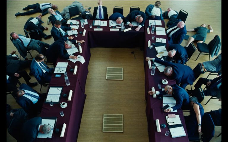 لانتیموس اینجا برخلاف بسیاری از فیلمهای سیاسی یا اجتماعی، جانب هیچکدام از این دو را نمیگیرد. او نه از نظریههای توطئه دفاع میکند و نه از ساختارهای سرمایهداری و پزشکی. در واقع، فیلم با یک نگاه بیرحمانه و بهشدت بدبینانه، هر دو را در یک سطح قرار میدهد: هر دو دیوانه، هر دو مخرب و هر دو در نهایت مسئول شکلگیری جهانی هستند که دیگر هیچ نقطه روشن مشخصی در آن وجود ندارد. این نگاه، ریشه سینمای لانتیموس است؛ جایی که مرزبندی میان خوب و بد، درست و غلط، قربانی و گناهکار عمداً محو میشود تا به مفهومی عمیقتر برسیم: اینکه جهان امروز به نقطهای رسیده که همه طرفهای داستان در نابودیاش سهم دارند.